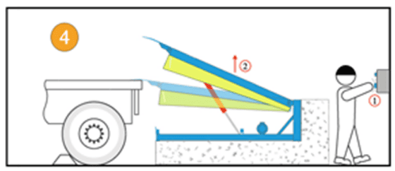 - Lưu ý: Đảm bảo rằng mũi sàn nâng (Lip) phải gác lên thùng xe tối thiểu 10cm khi bắt đầu lên hàng hoặc xuống hàng.
