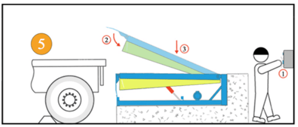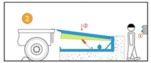 - Lưu ý: Đảm bảo rằng mũi sàn nâng (Lip) phải gác lên thùng xe tối thiểu 10cm khi bắt đầu lên hàng hoặc xuống hàng.